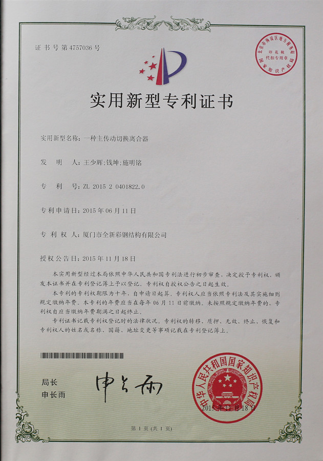 ऑटो क्लूथ का पेटेंट प्रमाणपत्र