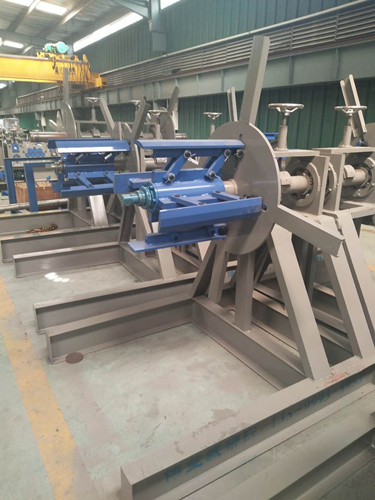 एक सेट मैनुअल अनकोइलर, बिना पावर वाला, मैन्युअल रूप से स्टील कॉइल के आंतरिक बोर के सिकुड़न और रोक को नियंत्रित करता है