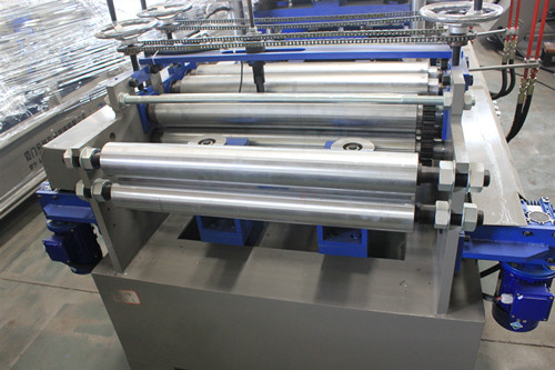 सामग्री गाइड के लिए दो रोलर्स (एक ऊपर और एक नीचे रोलर) और सीधा करने के लिए 5 रोलर्स (2 ऊपर और 3 नीचे रोलर)।